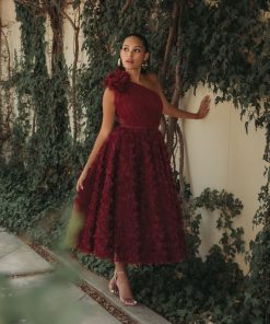Be the first to review “Mac Duggal Women’s Dresses Red One Shoulder Rosette A Line Midi Dress With 3d Flower | Red” Cancel reply