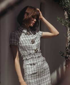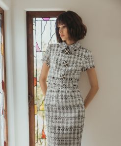 Be the first to review “Mac Duggal Women’s Dresses White Fitted Boucle Short Sleeve Button Up Midi Dress | White” Cancel reply