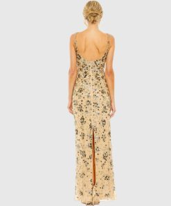 Make a statement at your next formal event with our Floral Embellished Scoop Neck Evening Gown. This elegant gown features intricate floral beading and embellishments around the scoop neckline, complemented by rhinestone spaghetti straps for a touch of sparkle. The back slit adds a chic, sultry finish, making this gown perfect for weddings, galas, and other special occasions.