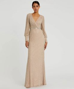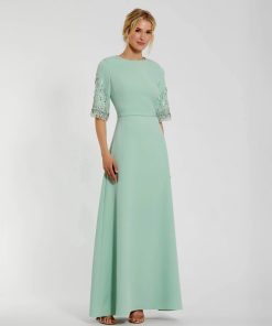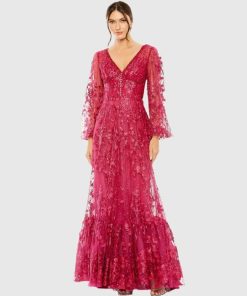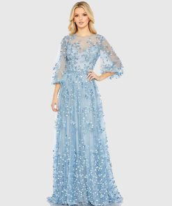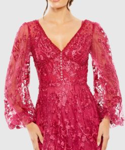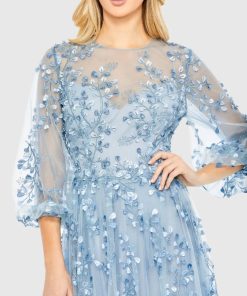 This Embroidered Puff Sleeve A-Line Gown blends delicate embroidery with chic puff sleeves, crafting a regal yet flattering silhouette. Perfect for weddings, galas, and formal events, it adds a timeless touch of elegance and sophistication to any special occasion.
