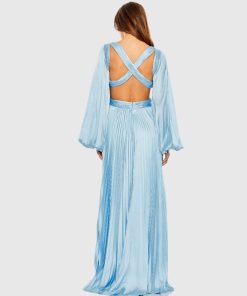 Elevate your elegance with our Long Sleeve Pleated Charmeuse Cut Out Gown, a sophisticated option for any formal occasion. Crafted from luxurious charmeuse fabric, this gown features chic pleating and stylish cut-out details that add a modern edge.