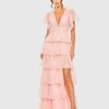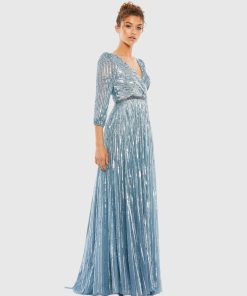 Mac Duggal Women’s Wedding Blue Sequined Wrap Over 3/4 Sleeve Gown | Blue