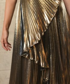 - Pleated metallic charmeuse fabric (100% polyester)