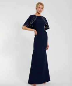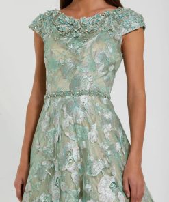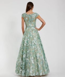 This high neck embroidered a-line ballgown exudes elegance and sophistication. With stunning cap sleeves and an embellished waist, it’s the perfect choice for a formal event or special occasion.