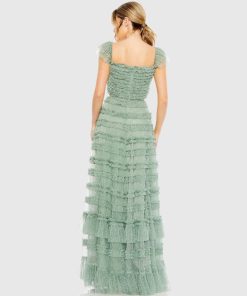Indulge in glamour with our Ruffle Cap Sleeve Embellished Tiered Gown. This stunning gown features charming ruffle cap sleeves and intricate embellishments throughout, creating a captivating and elegant look. Perfect for formal events or special occasions, this gown is sure to make you feel like royalty.
