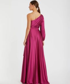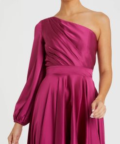 Designed with a modern twist, this dress features a dramatic single long sleeve for an asymmetrical look. Crafted from luxurious satin fabric, this dress offers a beautiful sheen that’s perfect for formal occasions, evening events, weddings, or upscale gatherings.