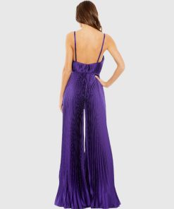 This fully-pleated wide-leg jumpsuit, crafted from luxurious silky charmeuse fabric, exudes elegance. Featuring functional pockets for added convenience, it combines sophistication with practicality, making it the perfect choice for any special occasion or stylish outing.
