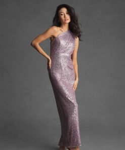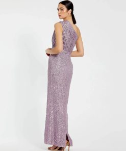 Illuminate the night in our Sequined Ruched One Shoulder Gown, crafted from dazzling sequin fabric, this gown is a show-stopping look. Featuring a chic one-shoulder neckline and sleeveless design, it’s your go-to for making a statement at any special occasion.