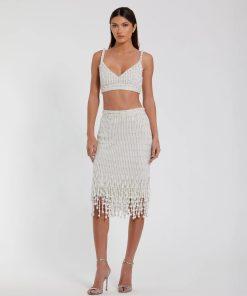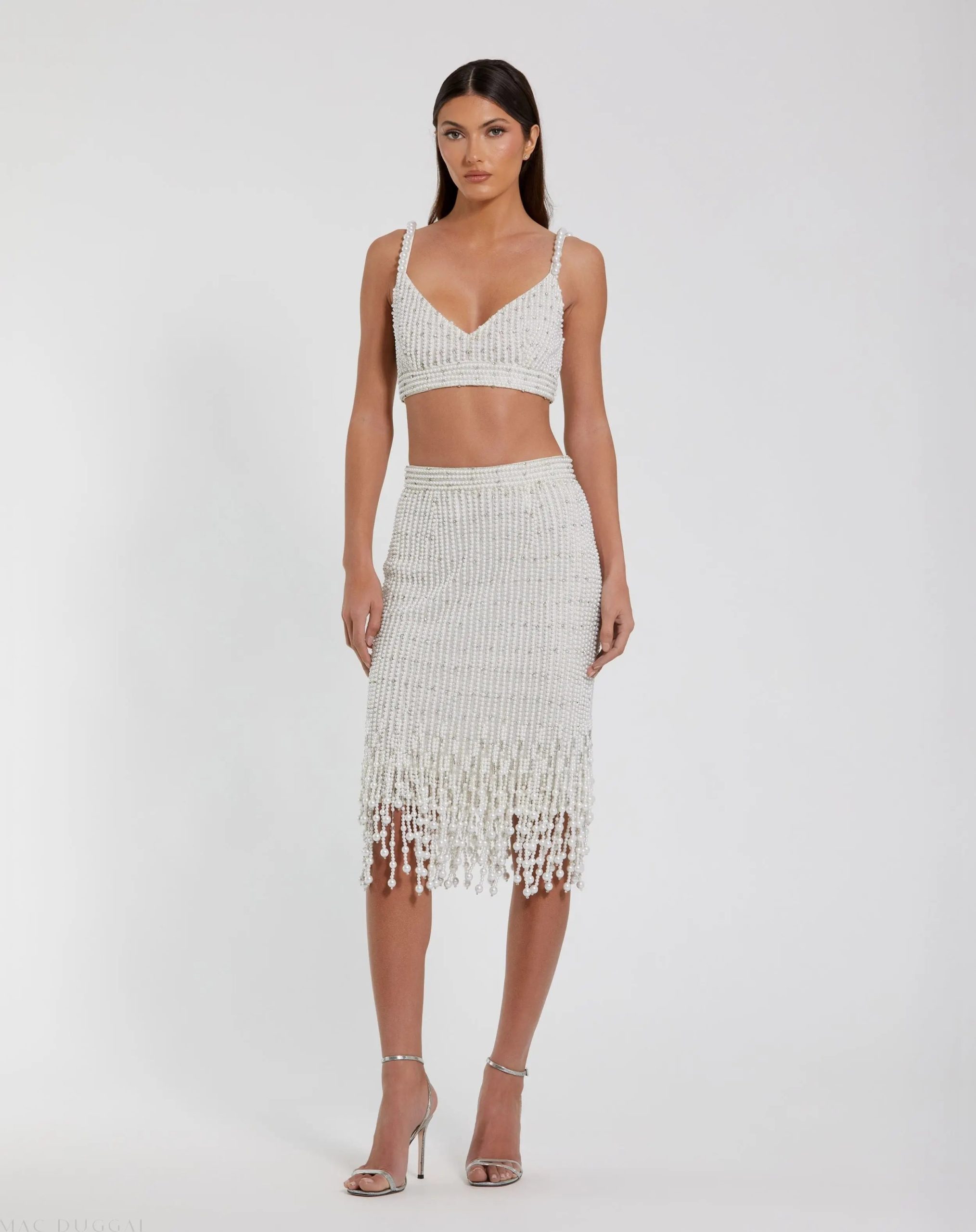 Make a bold statement with our Pearl Beaded Bra Top, a perfect fusion of elegance and edge. Adorned with intricate pearl beading, this bra top adds a touch of luxury to any ensemble. Ideal for festivals, special occasions, or a night out, it offers a unique and glamorous look. Pair it under our Pearl Beaded Cropped Jacket for a chic and coordinated outfit.