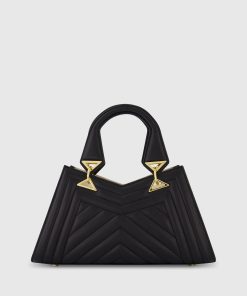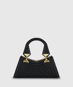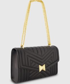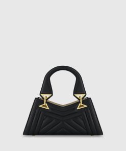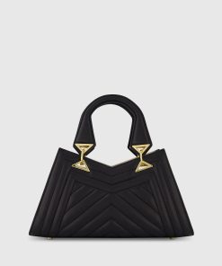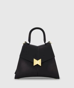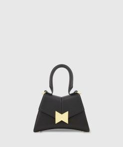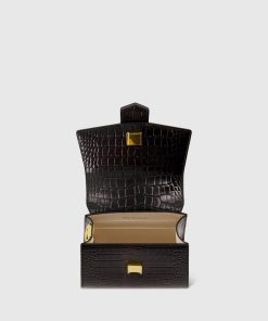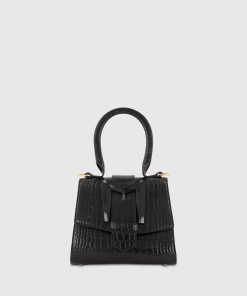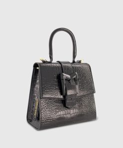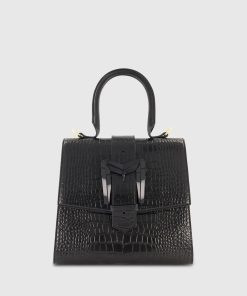 Mac Duggal Women’s Bags Black Buckled Medium Croco Leather Handbag With Detachable Strap | Black