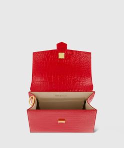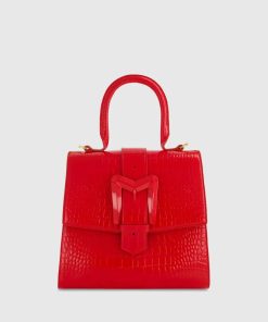 Mac Duggal Women’s Bags Red Buckled Medium Croco Leather Handbag With Detachable Strap | Cherry