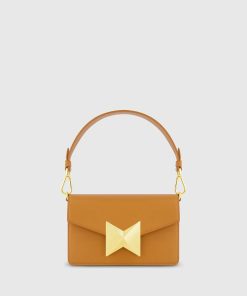 Mac Duggal Women’s Bags Brown Mini Leather Shoulder Handbag With Gold Hardware – Final Sale | Toffee