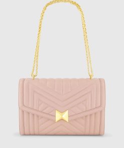 Mac Duggal Women’s Bags Pink Quilted Napa Leather Handbag With Gold Hardware – Final Sale | Rose