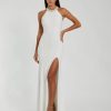 Mac Duggal Women’s Dresses Green Pleated High Neck Raglan Long Sleeve Side Slit Gown | Green
