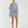 Mac Duggal Women’s Dresses Green Sequined Floral Long Sleeve High Neck Midi Dress | Sage Multi