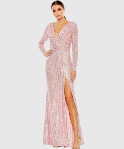 Mac Duggal Women’s Wedding Pink Sequined Long Sleeve Gown | Pink
